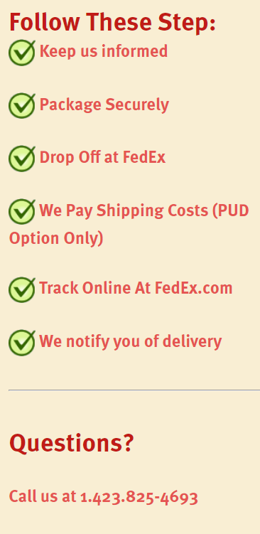call FedEx to arrange a pick up). All costs including insurance are paid by us. You track